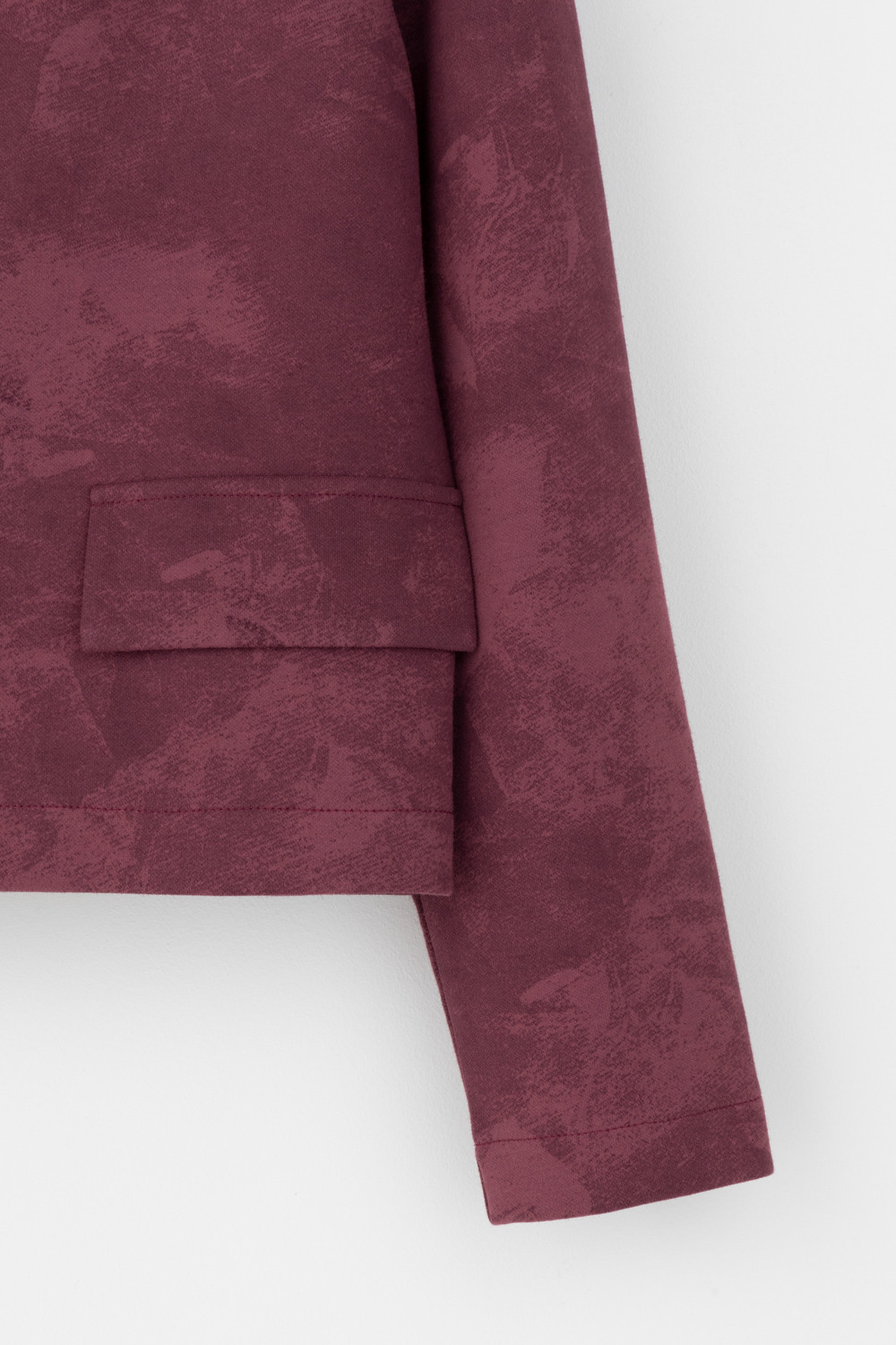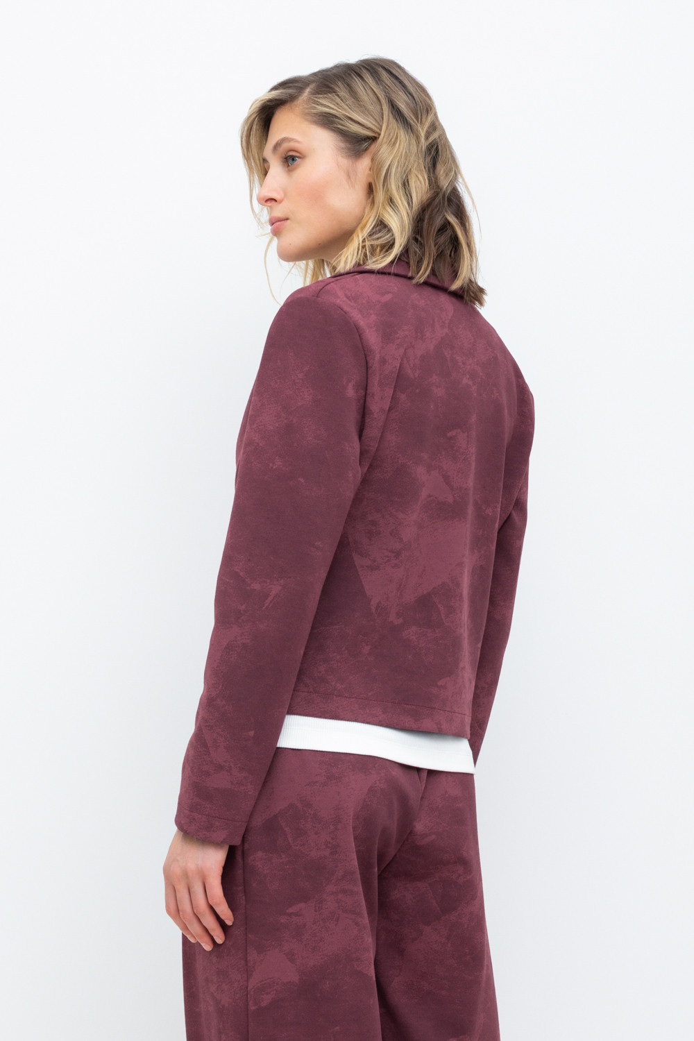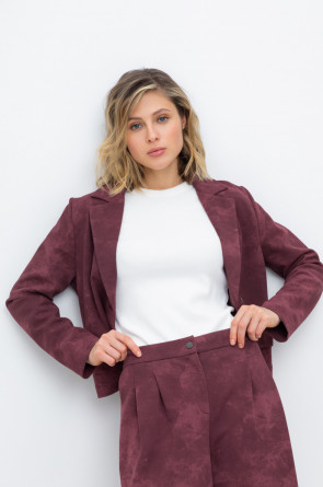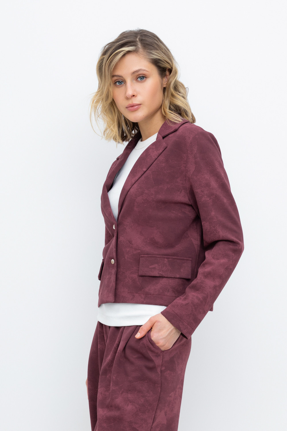 Женский укороченный жакет прямого кроя с имитацией карманов с клапаном из плотного набивного гладкого трикотажа интерлок. Гладкий и плотный материал на основе хлопка сохраняет форму.