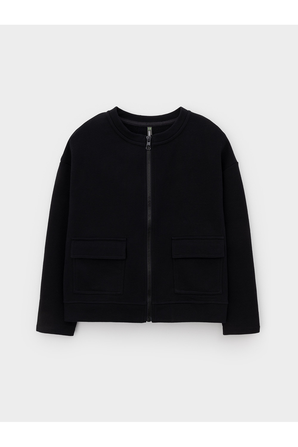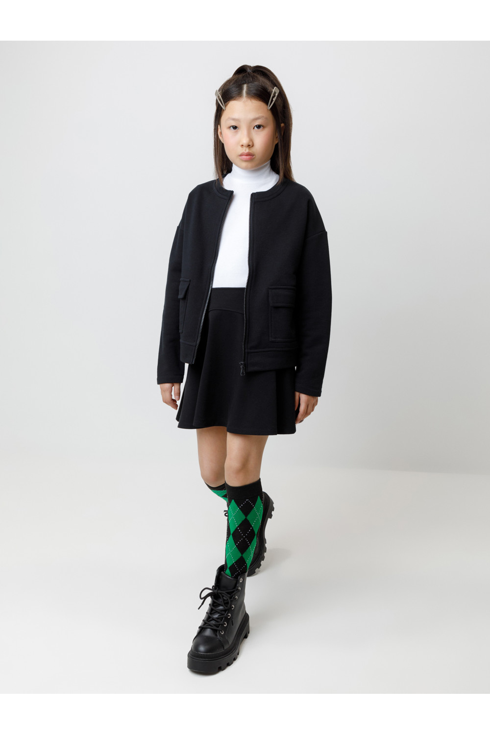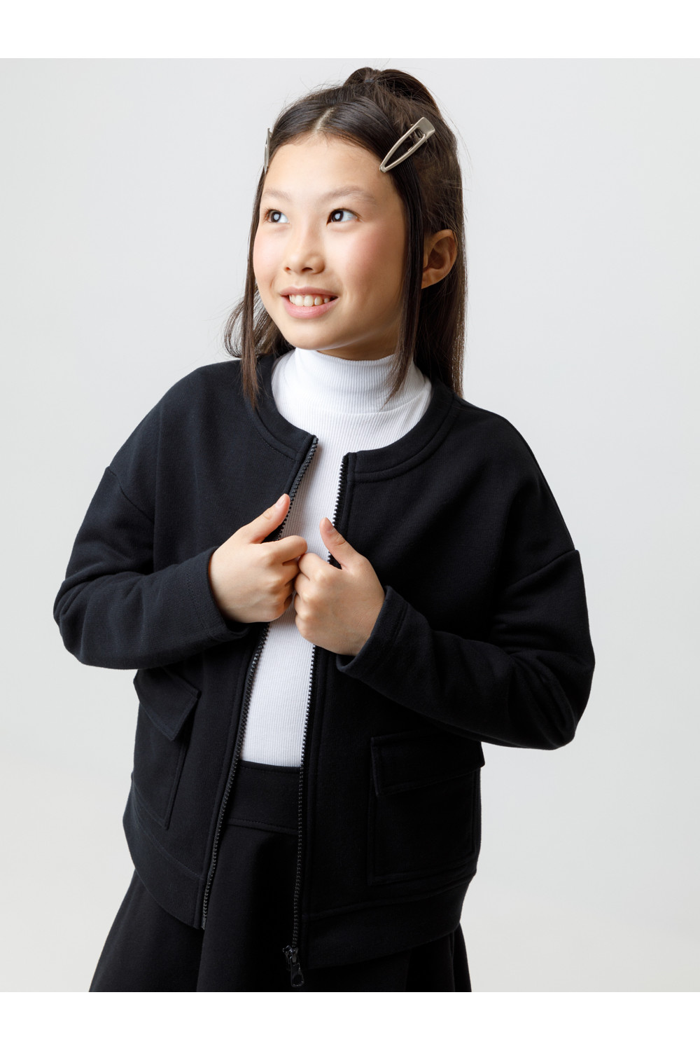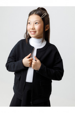 Бомбер школьный для девочки со спущенными плечами из высококачественного петельчатого футера. Застёгивается на молнию. По бокам два накладных кармана.
