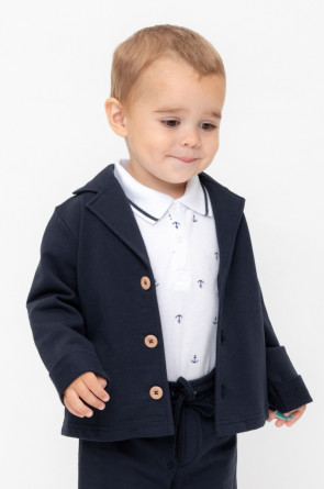 Пиджак для мальчика из высококачественного трикотажного полотна футер петля. Застёгивается на пуговицы. Изделие сохраняет цвет и форму после многократных стирок.