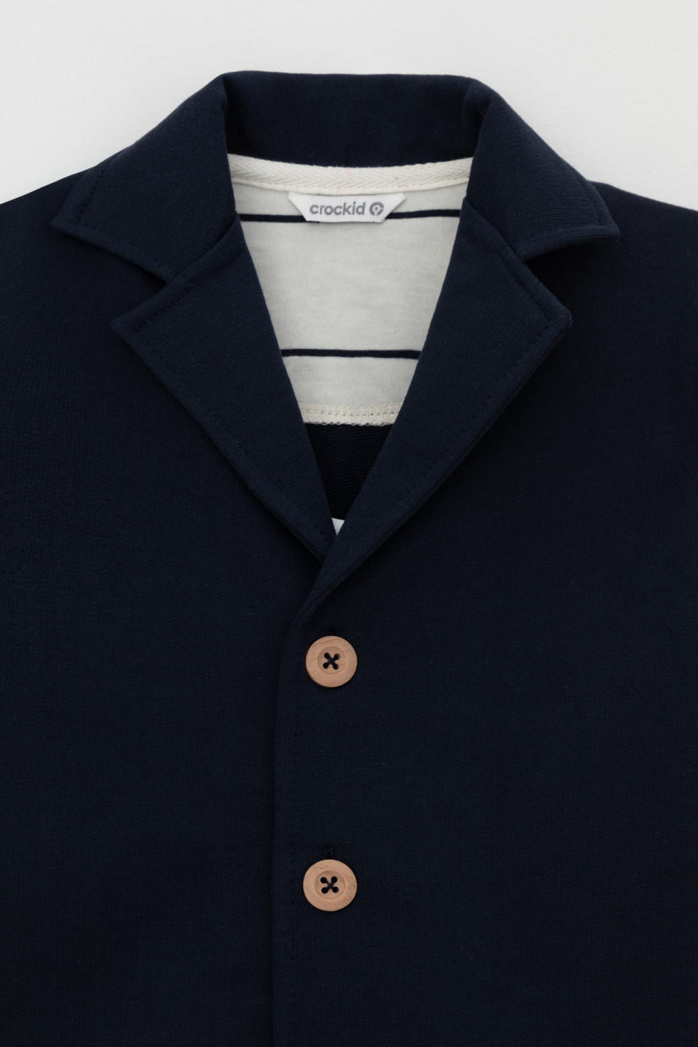 Пиджак для мальчика из высококачественного трикотажного полотна футер петля. Застёгивается на пуговицы. Изделие сохраняет цвет и форму после многократных стирок.