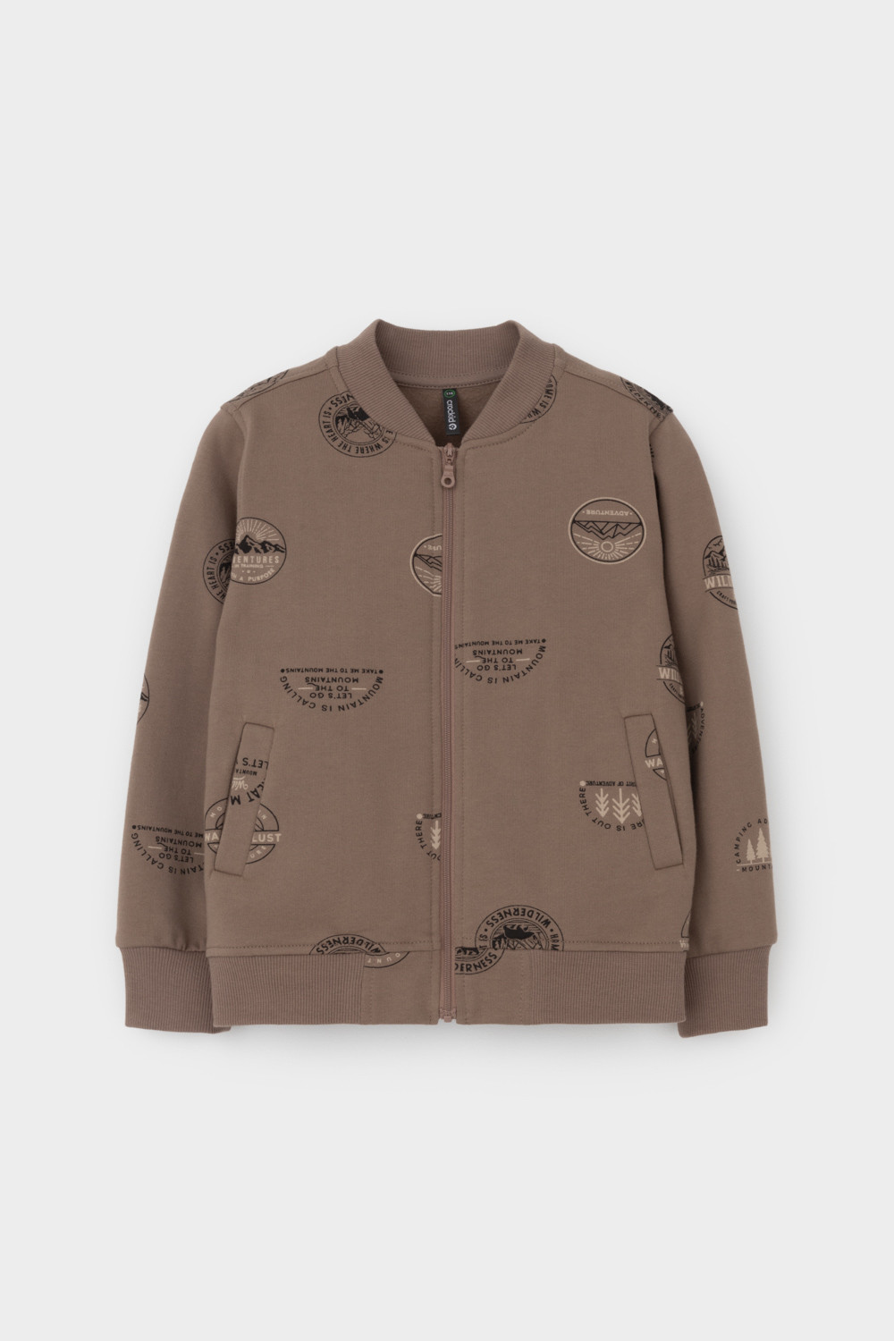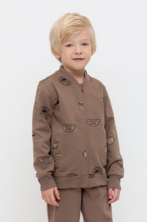 Трикотажный бомбер для мальчика из футера с начесом. Манжеты и пояс из эластичного трикотажа в рубчик.