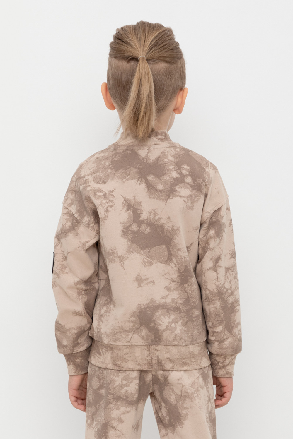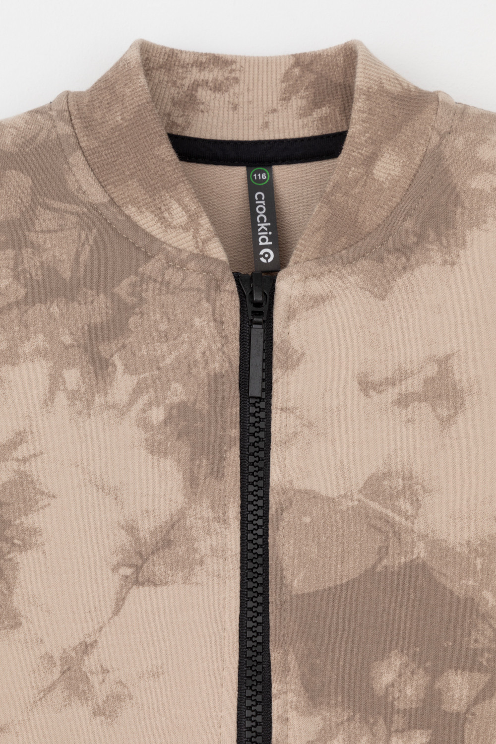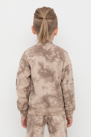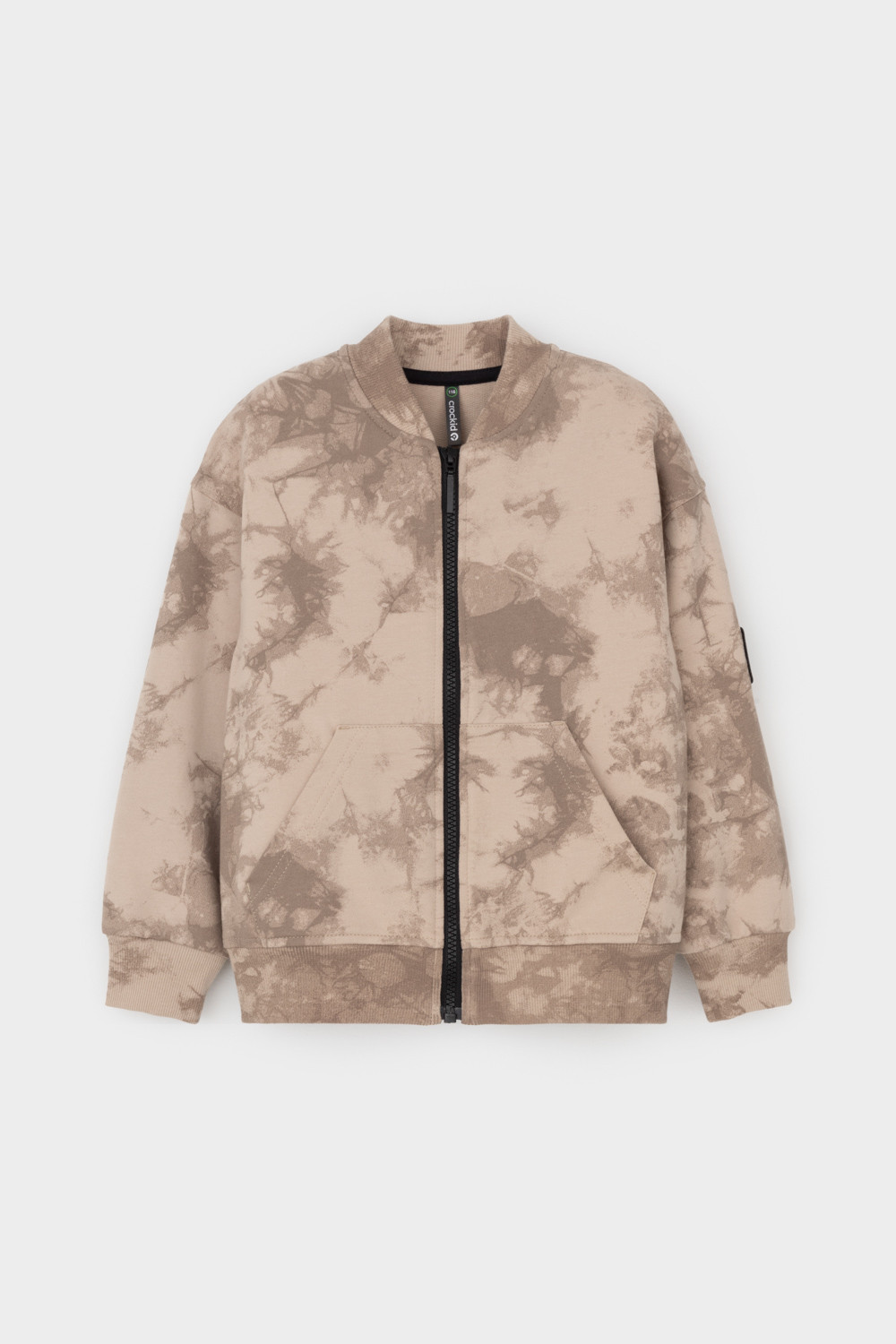 Трикотажный бомбер для мальчика из набивного петельчатого футера. Модель с эластичным воротником, манжетами и поясом. Удобные карманы.