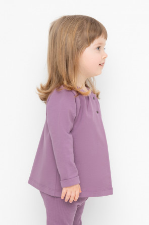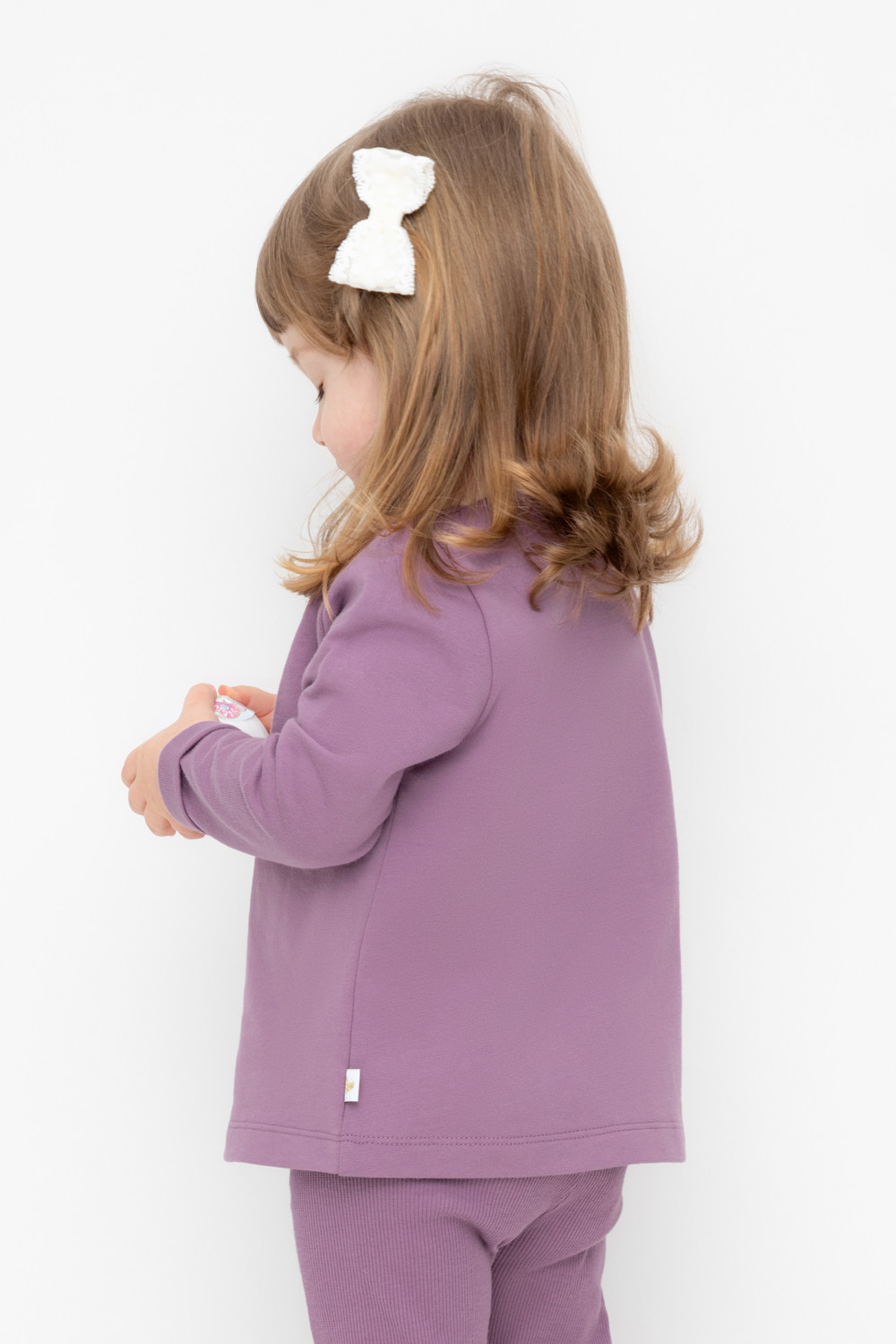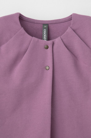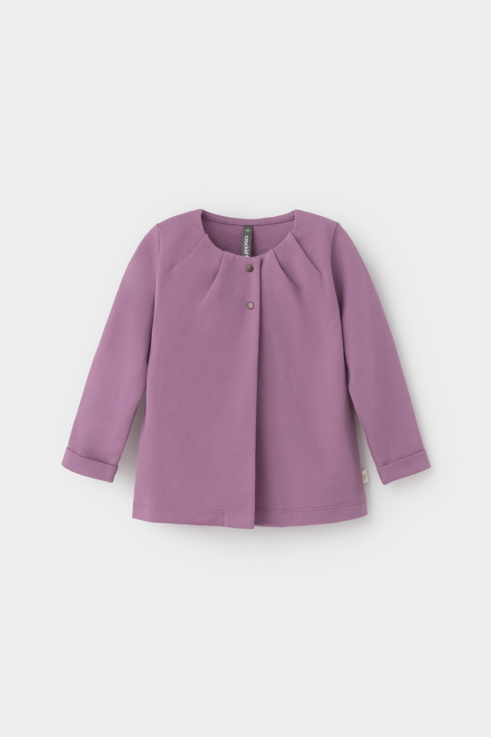 Трикотажный жакет для девочки из петельчатого футера. По горловине красивые складки. Застегивается сверху на кнопки.