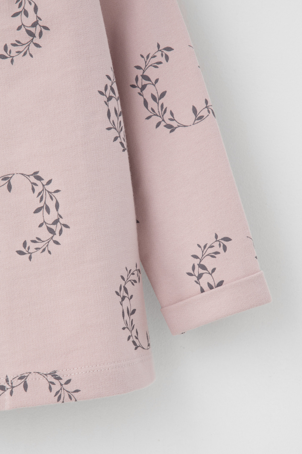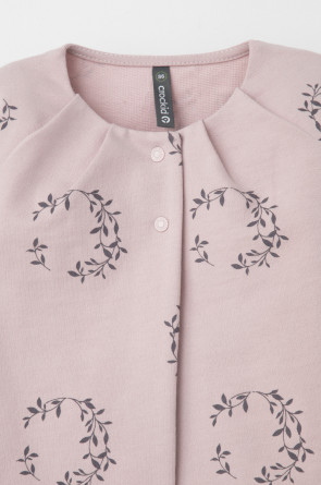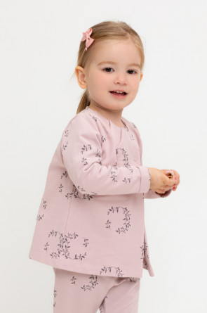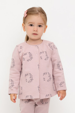 Трикотажный жакет для девочки из петельчатого футера. По горловине красивые складки. Застегивается сверху на кнопки.