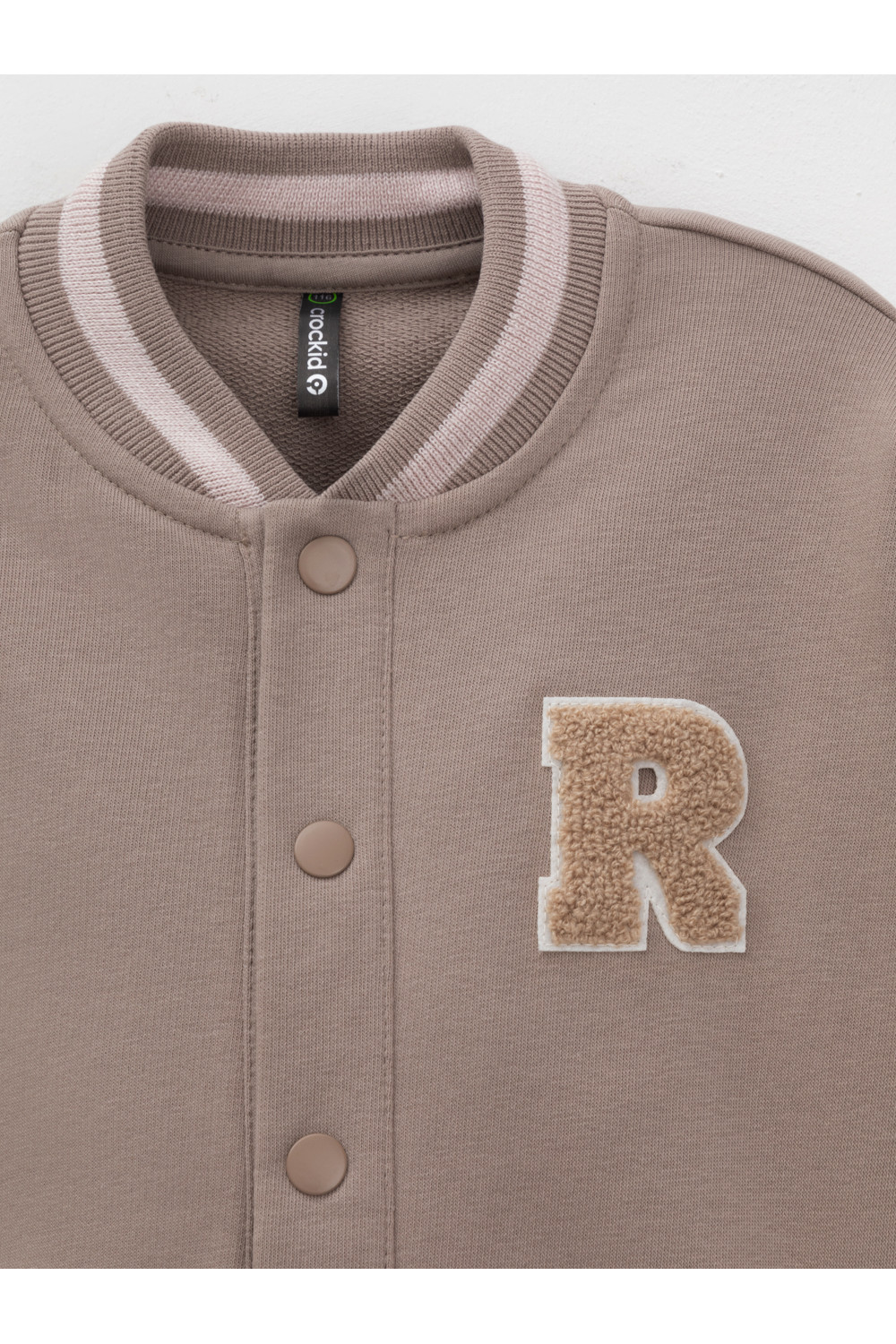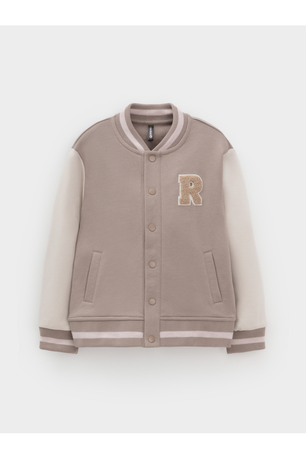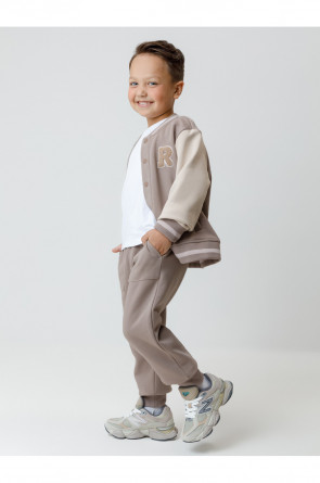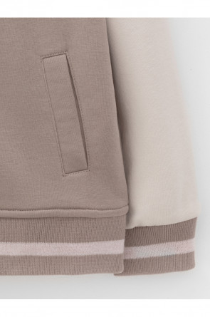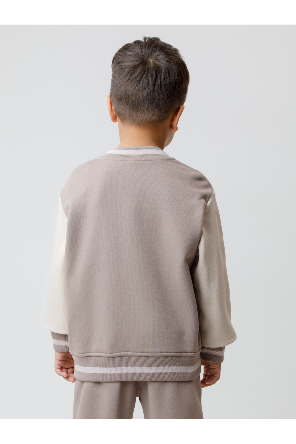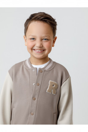 Бомбер для мальчика с контрастными рукавами из мягкого трикотажа. Воротник, манжеты и пояс вязаные. Спереди два кармана. Изделие сохраняет цвет и форму после многократных стирок. Все трикотажные полотна производятся в соответствии с нормами швейцарского сертификата ЭкоТекс.