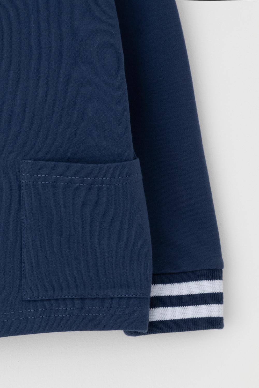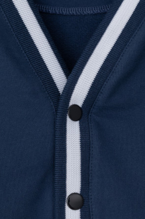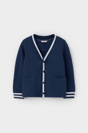 Жакет для мальчика из высококачественного трикотажного полотна футер петля. Застёгивается на кнопки. На рукавах эластичные вязаные манжеты. По бокам накладные карманы.