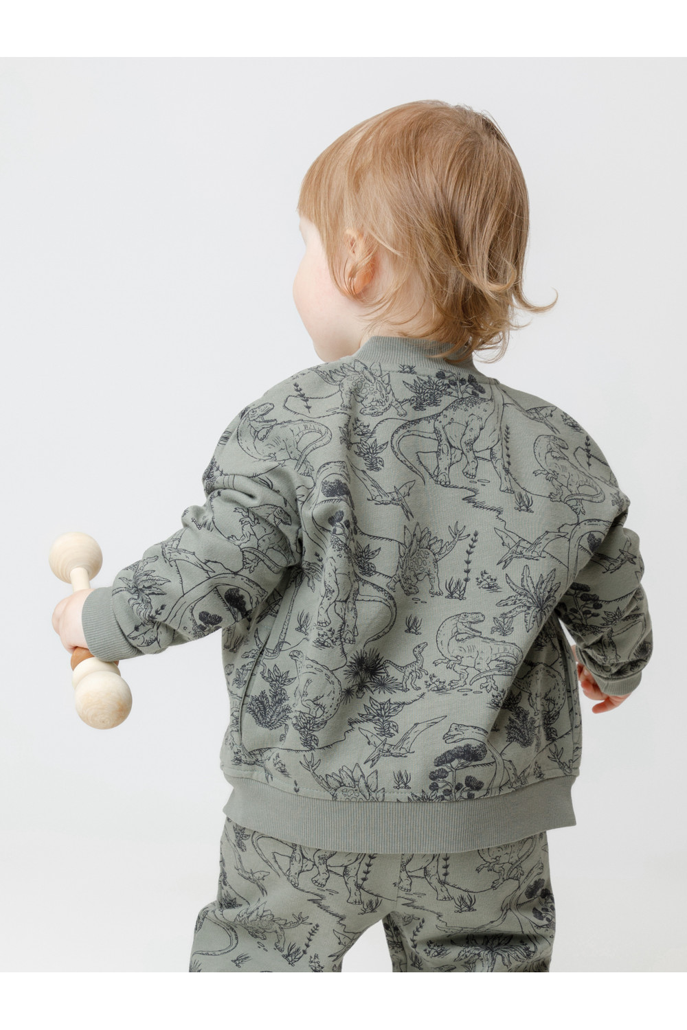 Тёплый бомбер для мальчика на молнии. Изготовлен из мягкого трикотажа с начёсом. Воротник, манжеты и пояс выполнены из эластичного полотна. По бокам два кармана. Изделие сохраняет цвет и форму после многократных стирок. Все трикотажные полотна производятся в соответствии с нормами швейцарского сертификата ЭкоТекс.