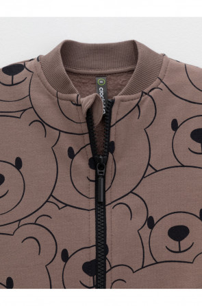 Тёплый бомбер для мальчика на молнии. Изготовлен из мягкого трикотажа с начёсом. Воротник, манжеты и пояс выполнены из эластичного полотна. По бокам два кармана. Изделие сохраняет цвет и форму после многократных стирок. Все трикотажные полотна производятся в соответствии с нормами швейцарского сертификата ЭкоТекс.