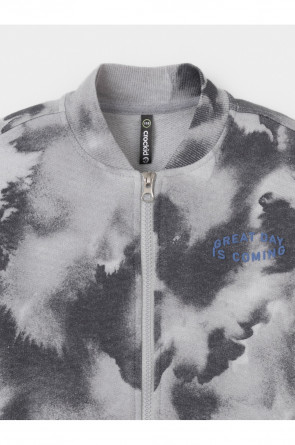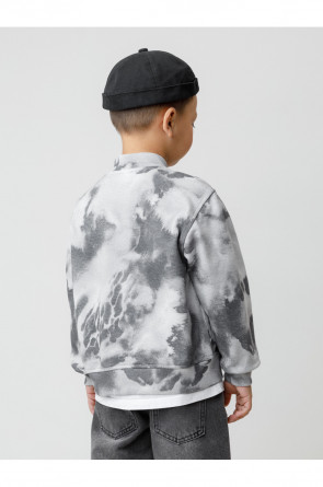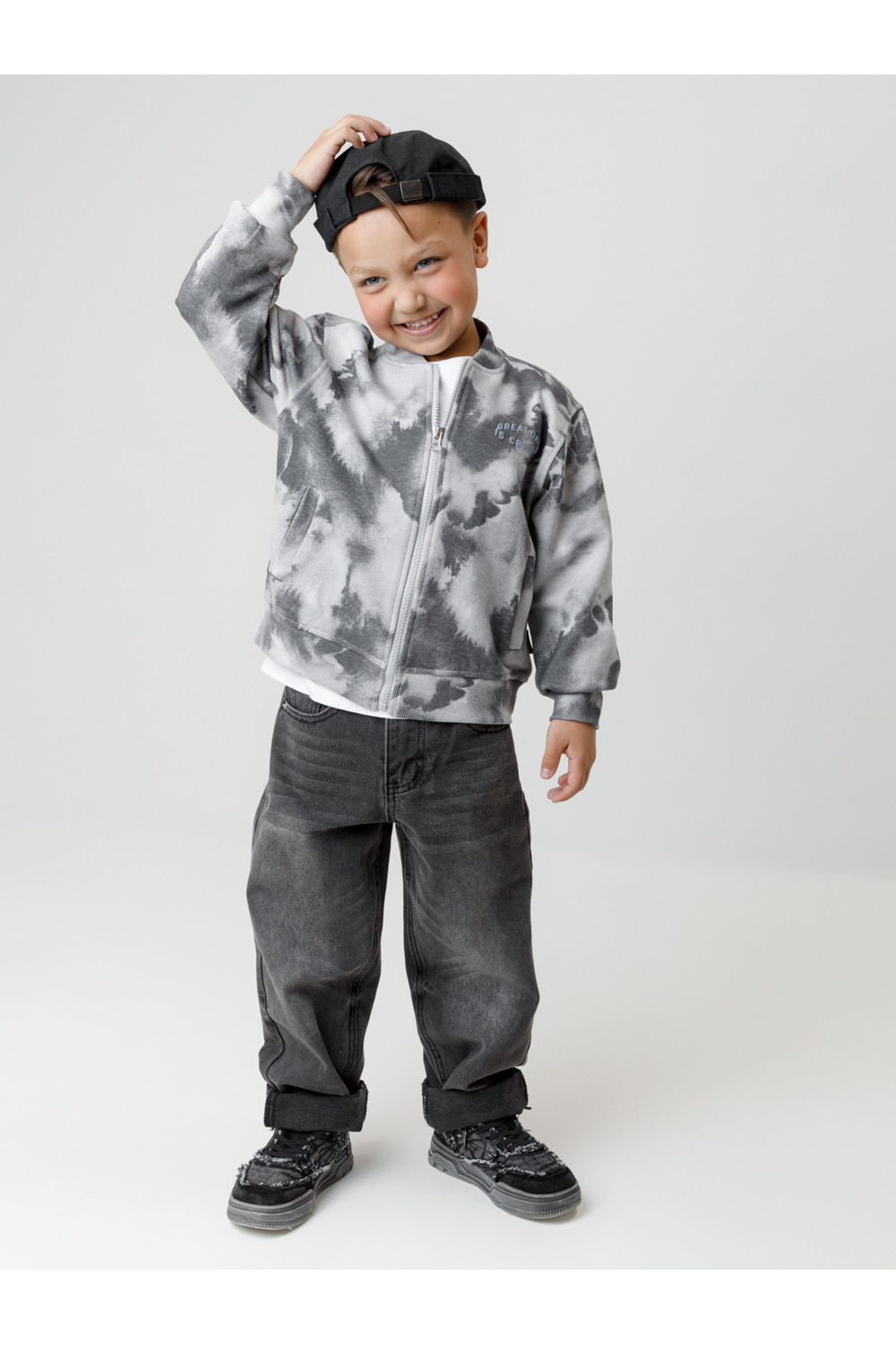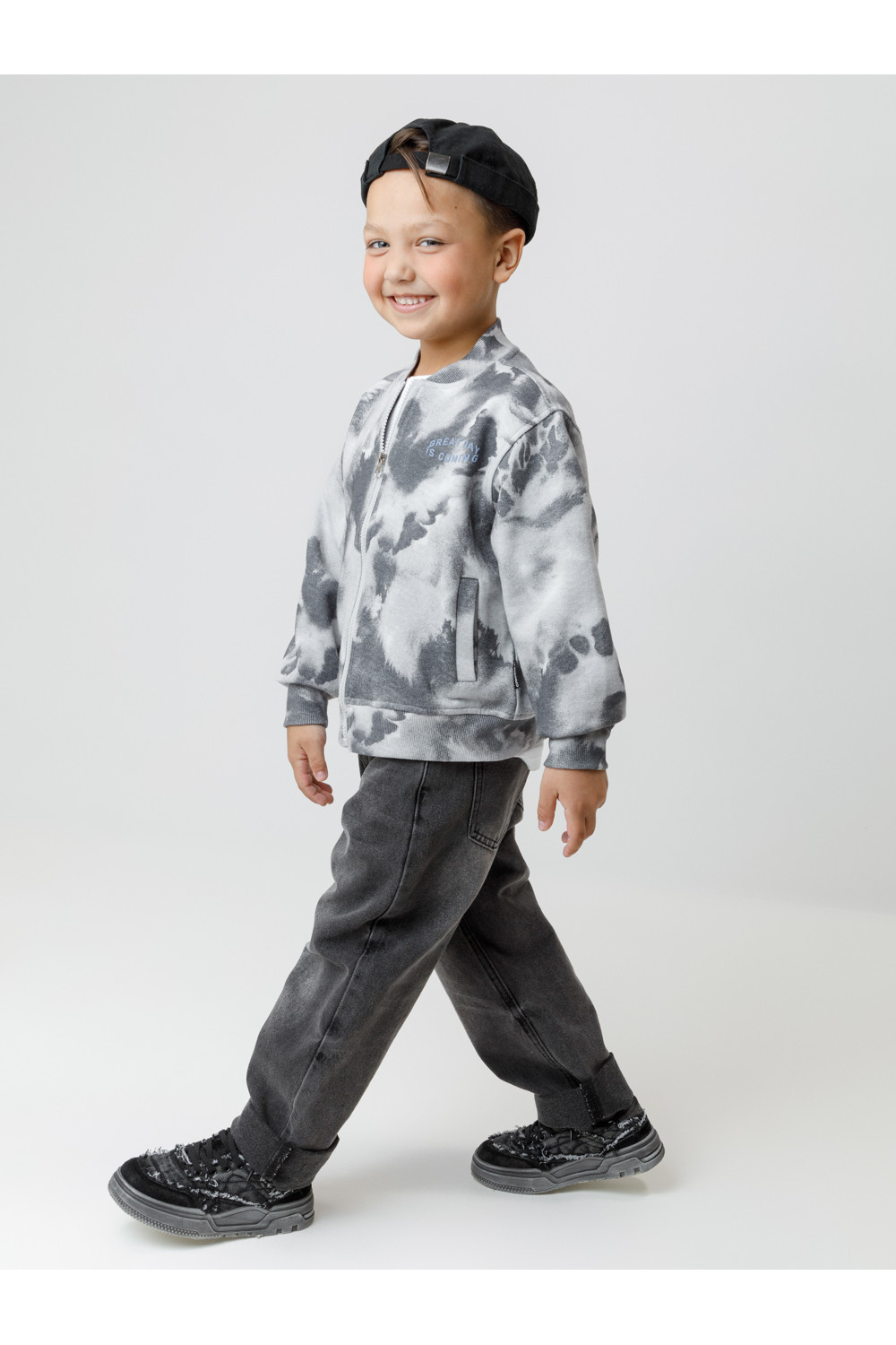 Бомбер для мальчика на молнии. Изготовлен из мягкого петельчатого трикотажа, произведённого из натурального хлопка. Воротник, манжеты и пояс выполнены из эластичного полотна. Спереди два кармана. Изделие сохраняет цвет и форму после многократных стирок. Все трикотажные полотна производятся в соответствии с нормами швейцарского сертификата ЭкоТекс.