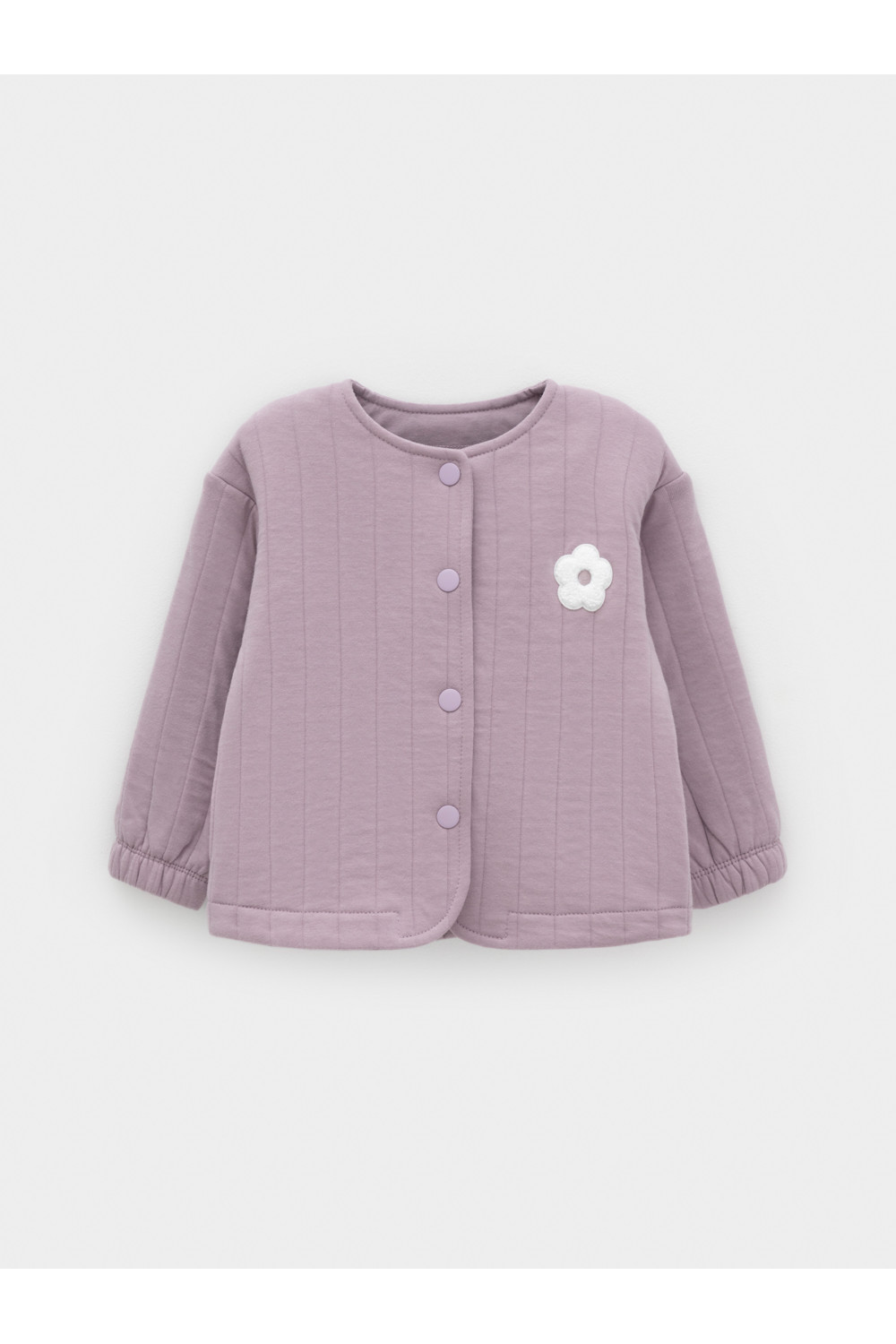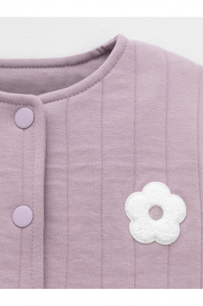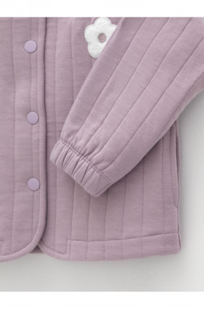 Тёплый бомбер для девочки из мягкого капитония. Капитоний – это стёганое трикотажное полотно с утеплителем из полиэстеровой нити. Модель со спущенным плечом застёгивается на кнопки. По бокам два кармана. Все трикотажные полотна производятся в соответствии с нормами швейцарского сертификата ЭкоТекс.