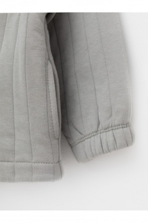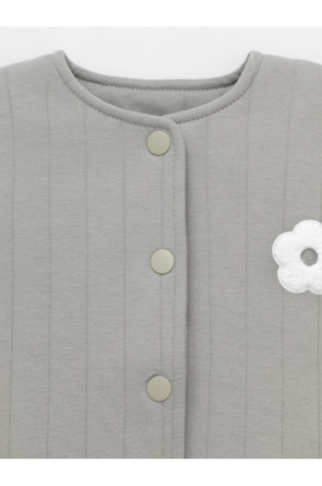 Тёплый бомбер для девочки из мягкого капитония. Капитоний – это стёганое трикотажное полотно с утеплителем из полиэстеровой нити. Модель со спущенным плечом застёгивается на кнопки. По бокам два кармана. Все трикотажные полотна производятся в соответствии с нормами швейцарского сертификата ЭкоТекс.