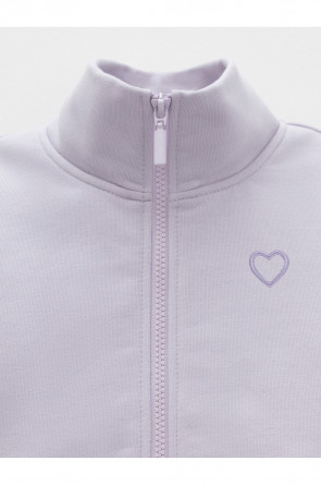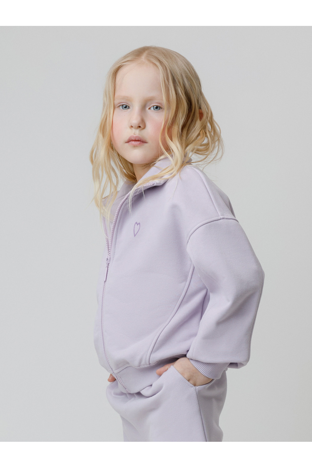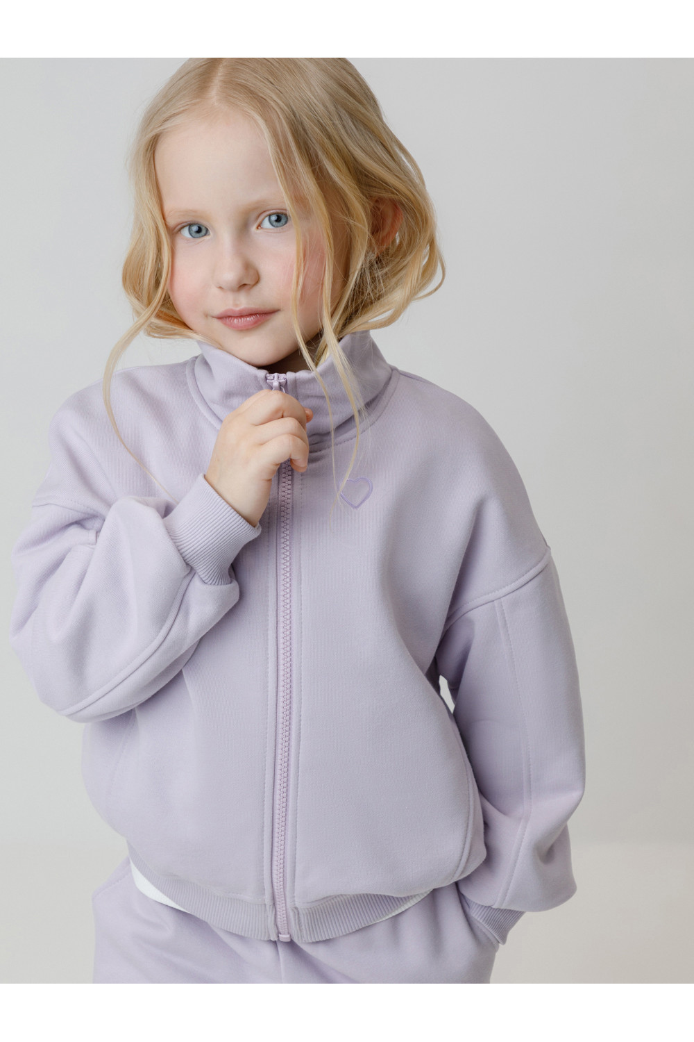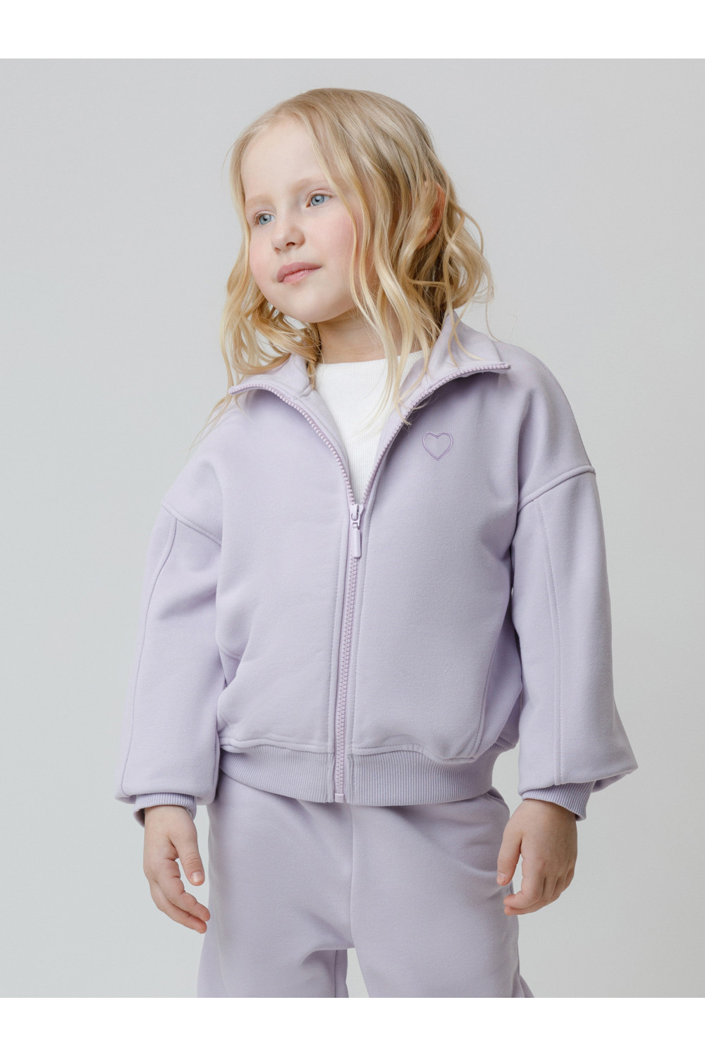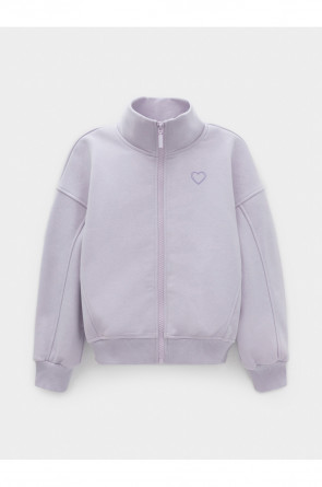 Бомбер для девочки со спущенными плечами и воротником-стойкой. Изготовлен из высококачественного петельчатого футера трёхнитки. Застёгивается на молнию. Манжеты и пояс выполнены из эластичного полотна. Изделие сохраняет цвет и форму после многократных стирок. Все трикотажные полотна производятся в соответствии с нормами швейцарского сертификата ЭкоТекс.
