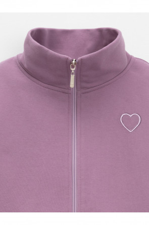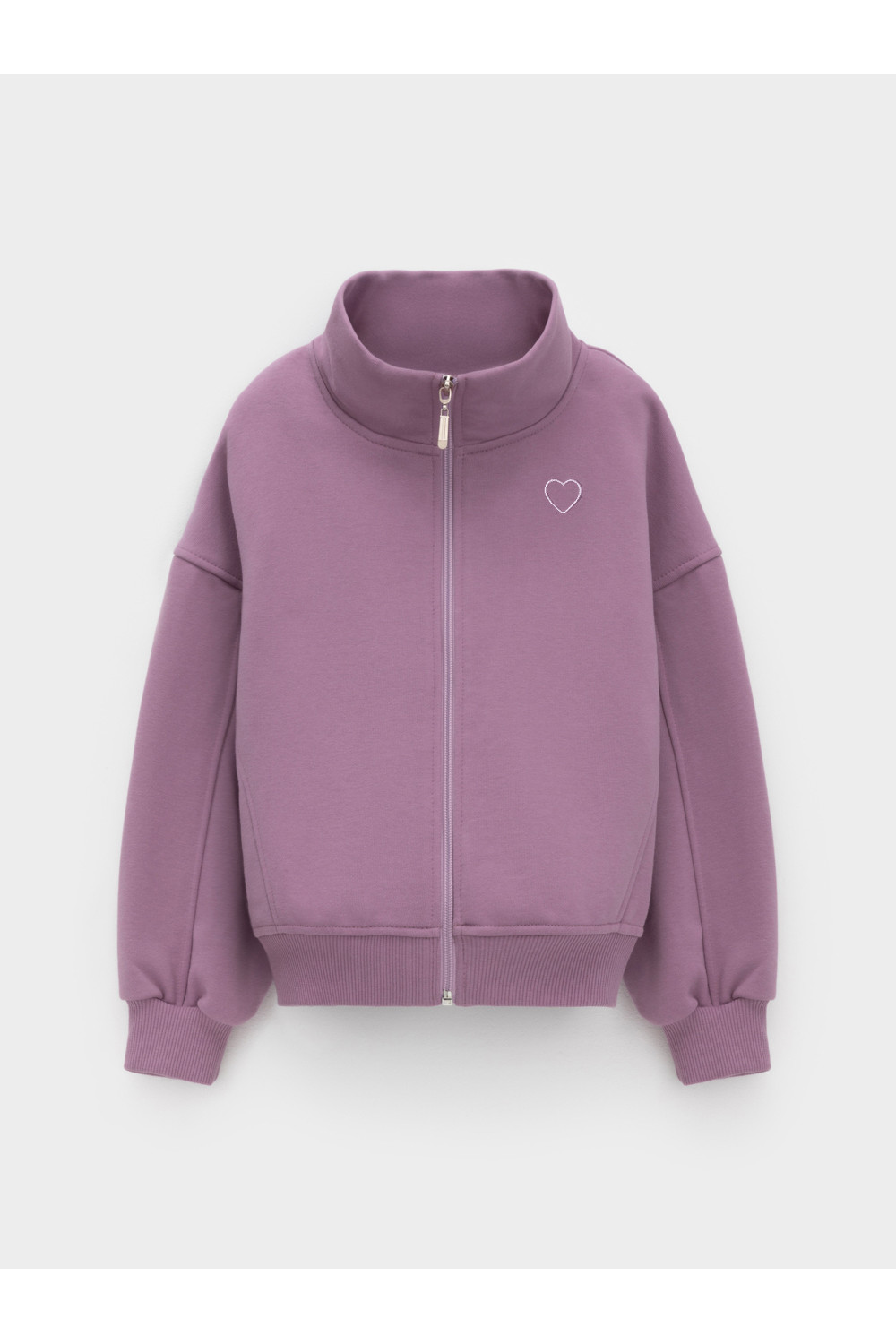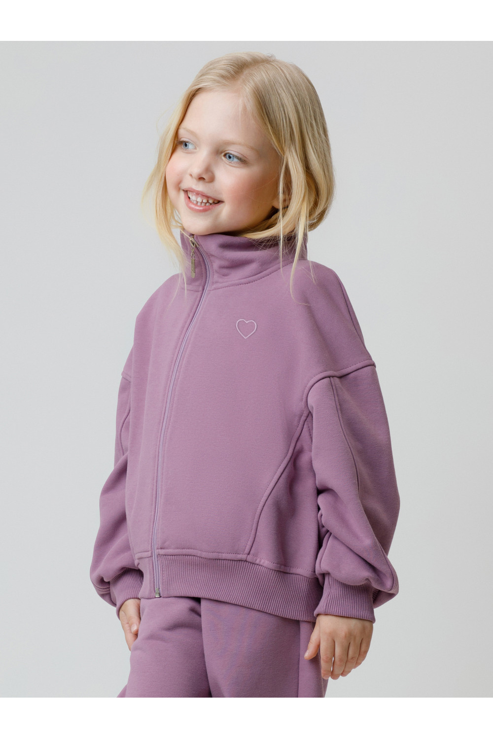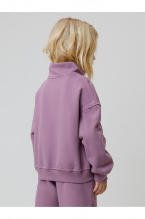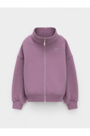 Бомбер для девочки со спущенными плечами и воротником-стойкой. Изготовлен из высококачественного петельчатого футера трёхнитки. Застёгивается на молнию. Манжеты и пояс выполнены из эластичного полотна. Изделие сохраняет цвет и форму после многократных стирок. Все трикотажные полотна производятся в соответствии с нормами швейцарского сертификата ЭкоТекс.