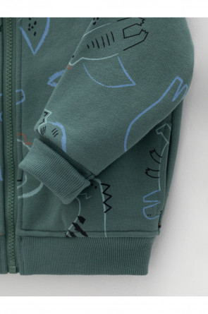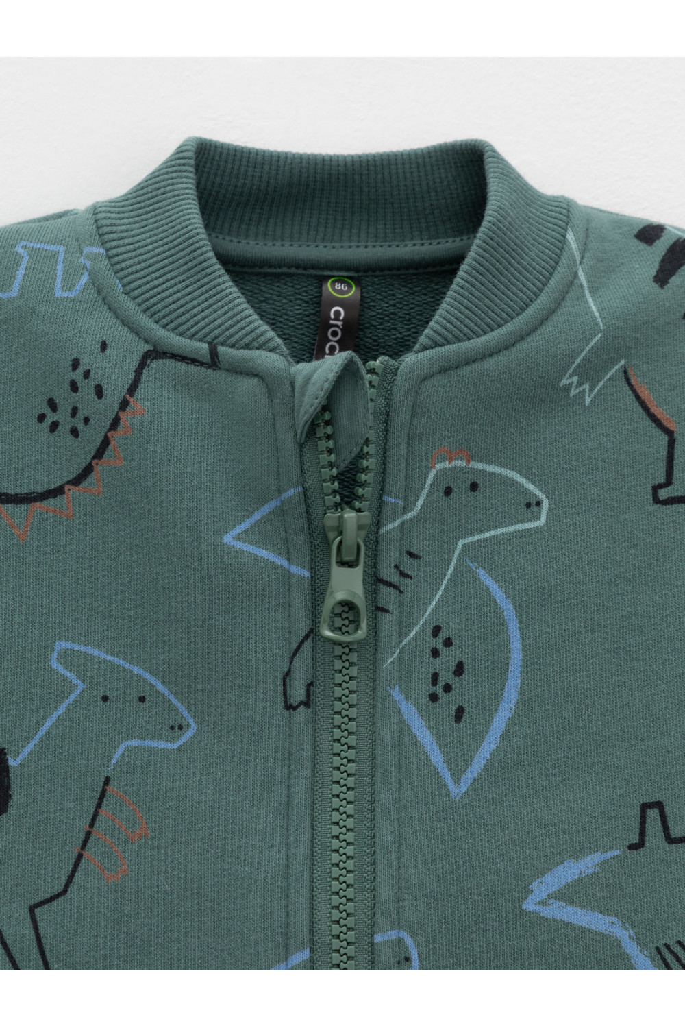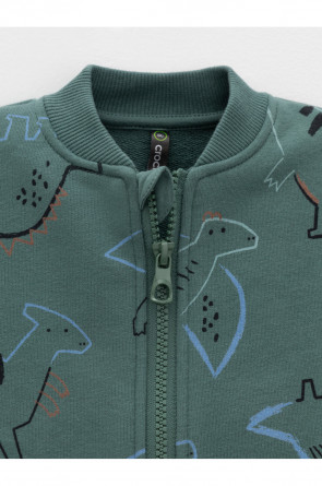 Бомбер для мальчика на молнии. Изготовлен из мягкого петельчатого футера трёхнитки. В составе 80% натурального хлопка и 20% полиэстера, при этом полиэстер ввязан внутрь по особой технологии и не соприкасается с кожей. Воротник, манжеты и пояс выполнены из эластичного полотна. По бокам два кармана. Изделие сохраняет цвет и форму после многократных стирок. Все трикотажные полотна производятся в соответствии с нормами швейцарского сертификата ЭкоТекс.