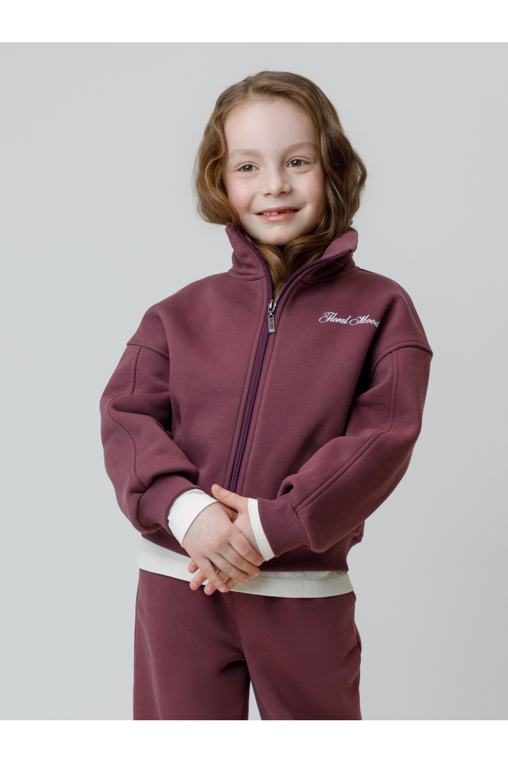 Тёплый бомбер для девочки со спущенными плечами и воротником-стойкой. Изготовлен из высококачественного футера трёхнитки с начёсом. Застёгивается на молнию. Манжеты и пояс выполнены из эластичного полотна. Изделие сохраняет цвет и форму после многократных стирок. Все трикотажные полотна производятся в соответствии с нормами швейцарского сертификата ЭкоТекс.