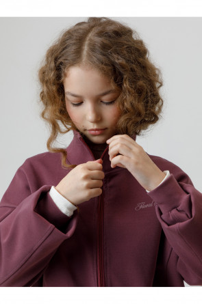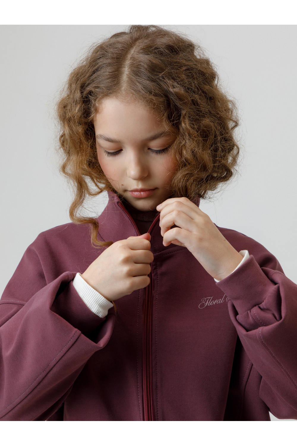 Бомбер для девочки со спущенными плечами и воротником-стойкой. Изготовлен из премиального трикотажного полотна DOUBLE FACE. Застёгивается на молнию. Манжеты и пояс выполнены из эластичного полотна. Изделие сохраняет цвет и форму после многократных стирок. Все трикотажные полотна производятся в соответствии с нормами швейцарского сертификата ЭкоТекс.