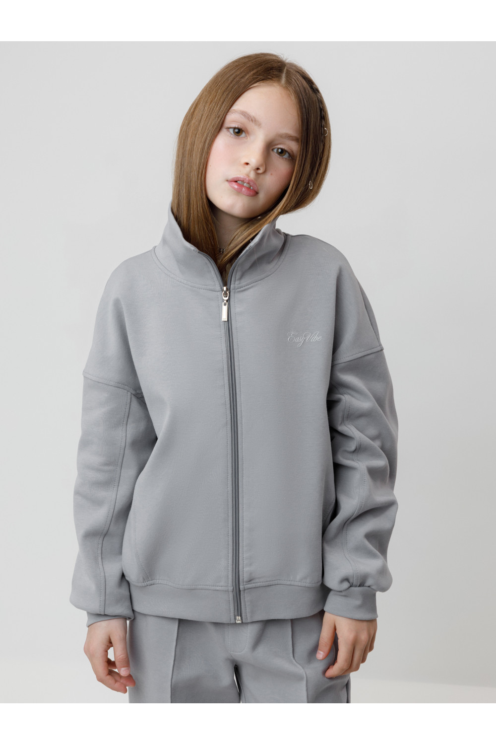 Бомбер для девочки со спущенными плечами и воротником-стойкой. Изготовлен из премиального трикотажного полотна DOUBLE FACE. Застёгивается на молнию. Манжеты и пояс выполнены из эластичного полотна. Изделие сохраняет цвет и форму после многократных стирок. Все трикотажные полотна производятся в соответствии с нормами швейцарского сертификата ЭкоТекс.