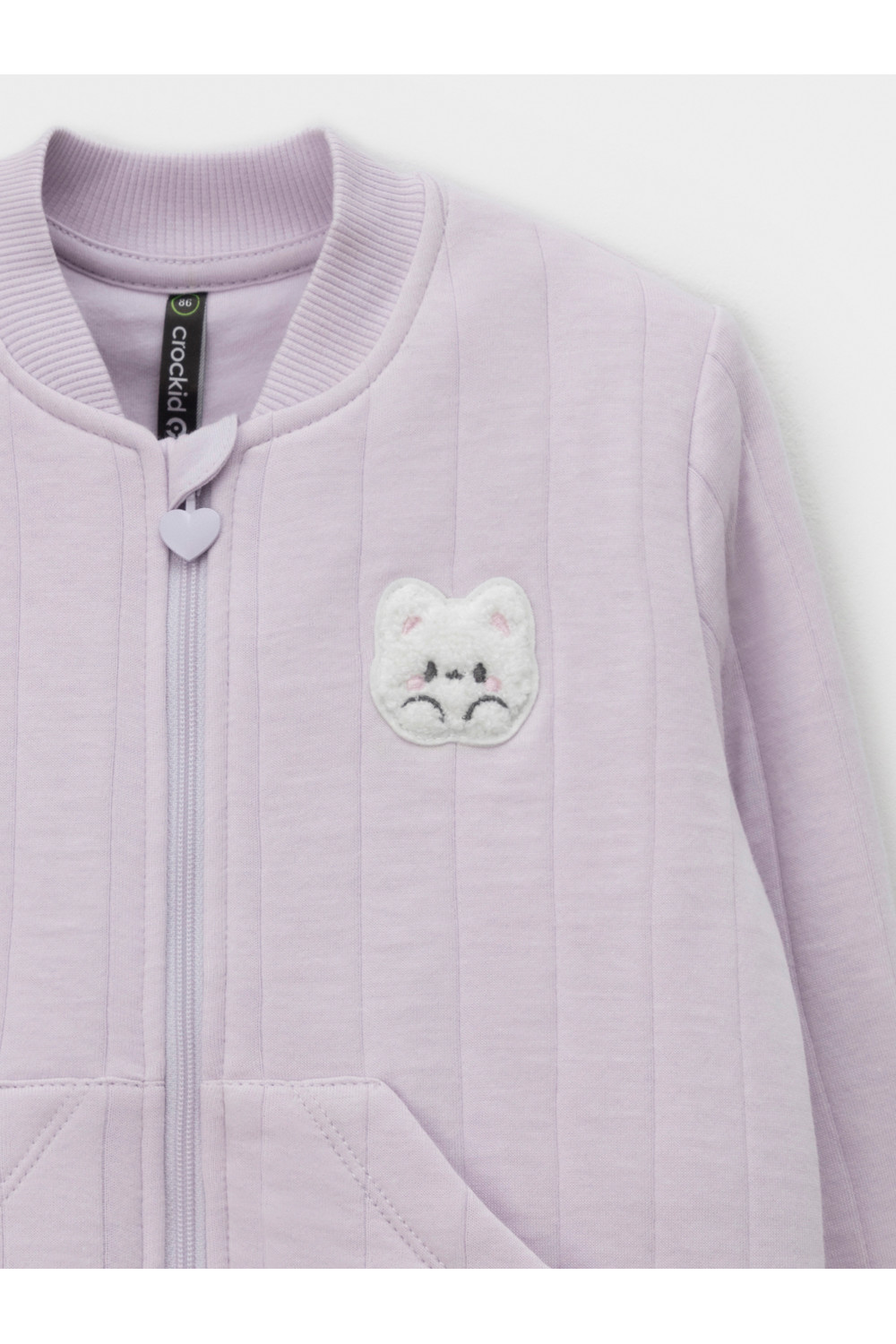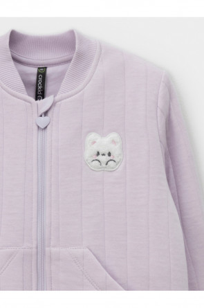 Тёплая куртка из капитония для девочки. Капитоний — это стёганое трикотажное полотно с утеплителем из полиэстеровой нити. Изделие застёгивается на молнию с мягкой защитой шеи и подбородка. Эластичные манжеты на рукавах. Спереди два кармана. Все трикотажные полотна производятся в соответствии с нормами швейцарского сертификата ЭкоТекс.