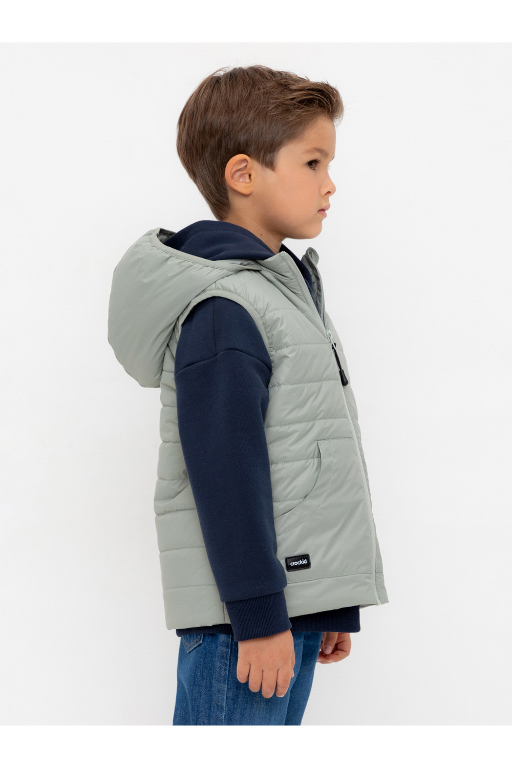 Стеганый жилет с капюшоном для мальчика с утеплителем Fellex®: 120 г/м2. Выполнен из мембранной ткани с дополнительной тефлоновой обработкой. Данный вид обработки предохраняет изделие от загрязнения и лучше отводит влагу. Подклад: 60% хлопок и 40% полиэстер на размерах 86-92 и 92-98 и 100% полиэстер на остальных размерах. У изделия предусмотрена защита подбородка. Спереди два кармана. Во всех изделиях верхнего ассортимента для безопасности ребенка предусмотрены светоотражающие элементы.