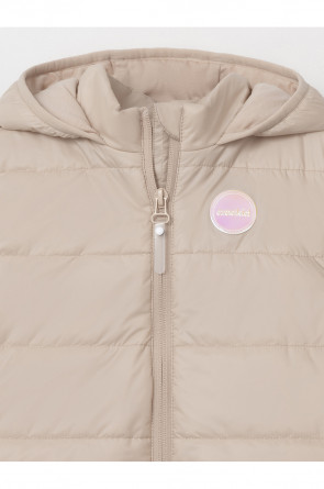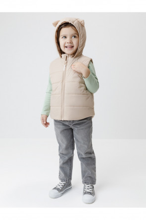 Стёганый жилет с капюшоном для девочки с утеплителем Fellex®, 120 г/м2. Выполнен из мембранной ткани с дополнительной тефлоновой обработкой. Данный вид обработки предохраняет изделие от загрязнения и лучше отводит влагу. Подклад из хлопка в размерах 86-92 и 92-98 и из полиэстера в размерах от 98-104 до 122-128. Капюшон не снимается, обработан по краю эластичным кантом для лучшего прилегания. Изделие застёгивается на молнию, предусмотрена защита подбородка. Два кармана по бокам без застёжек. Во всех изделиях верхнего ассортимента для безопасности ребёнка предусмотрены светоотражающие элементы.