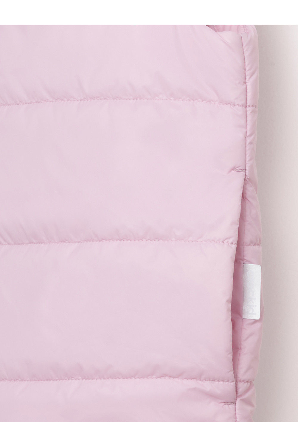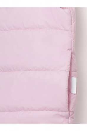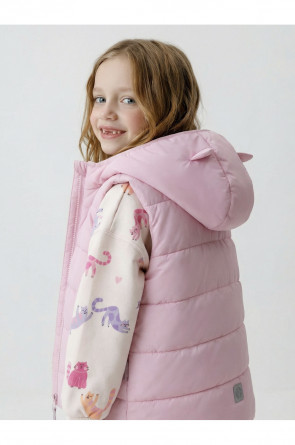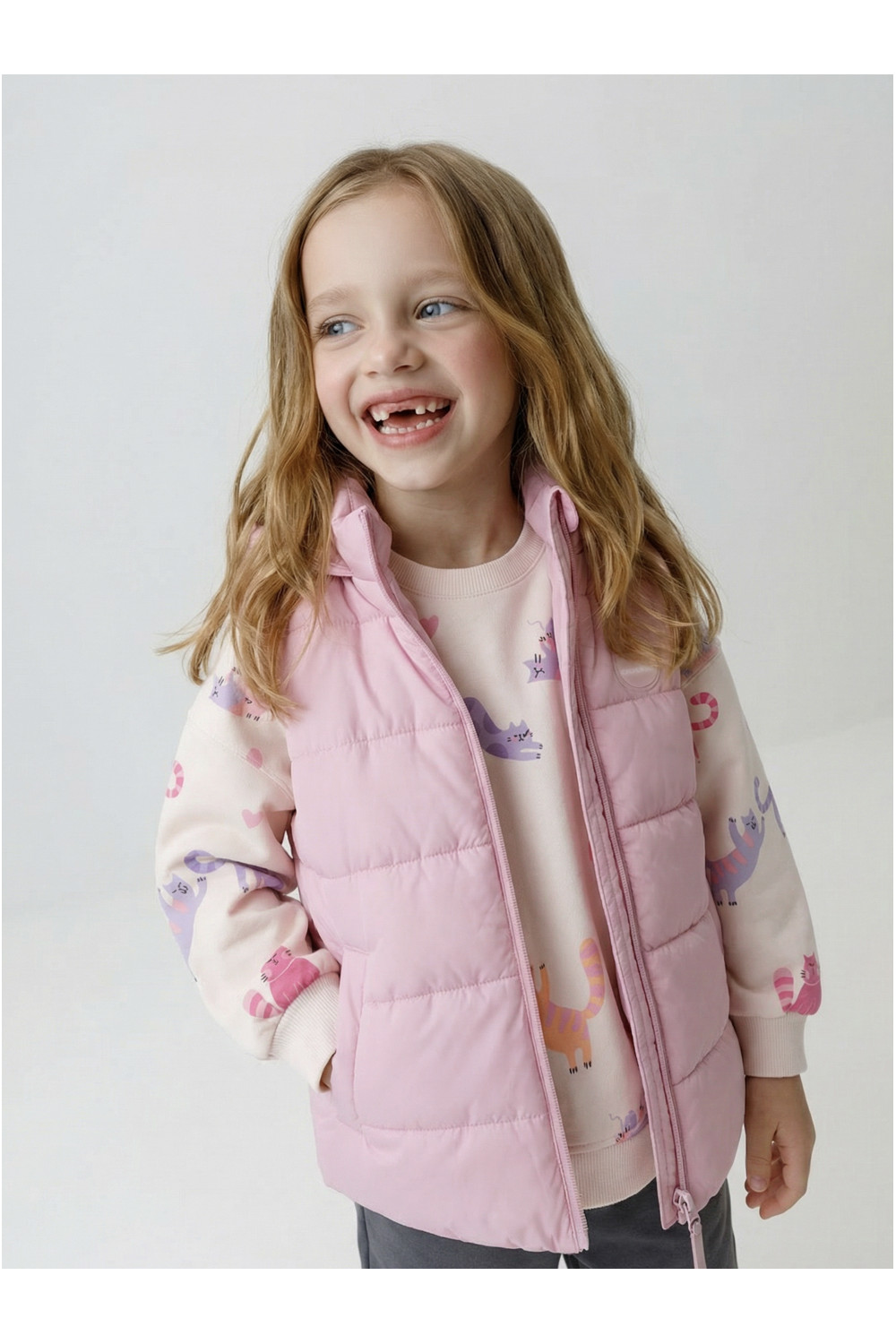 Стёганый жилет с капюшоном для девочки с утеплителем Fellex®, 120 г/м2. Выполнен из мембранной ткани с дополнительной тефлоновой обработкой. Данный вид обработки предохраняет изделие от загрязнения и лучше отводит влагу. Подклад из хлопка в размерах 86-92 и 92-98 и из полиэстера в размерах от 98-104 до 122-128. Капюшон не снимается, обработан по краю эластичным кантом для лучшего прилегания. Изделие застёгивается на молнию, предусмотрена защита подбородка. Два кармана по бокам без застёжек. Во всех изделиях верхнего ассортимента для безопасности ребёнка предусмотрены светоотражающие элементы.