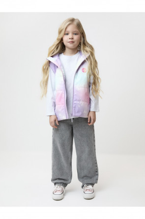Стёганый жилет с капюшоном для девочки с утеплителем Fellex®, 120 г/м2. Выполнен из мембранной ткани с дополнительной тефлоновой обработкой. Данный вид обработки предохраняет изделие от загрязнения и лучше отводит влагу. Подклад из 100% полиэстера. Капюшон не снимается. Изделие застёгивается на молнию, предусмотрена защита подбородка. Два кармана по бокам без застёжек. Во всех изделиях верхнего ассортимента для безопасности ребёнка предусмотрены светоотражающие элементы.
