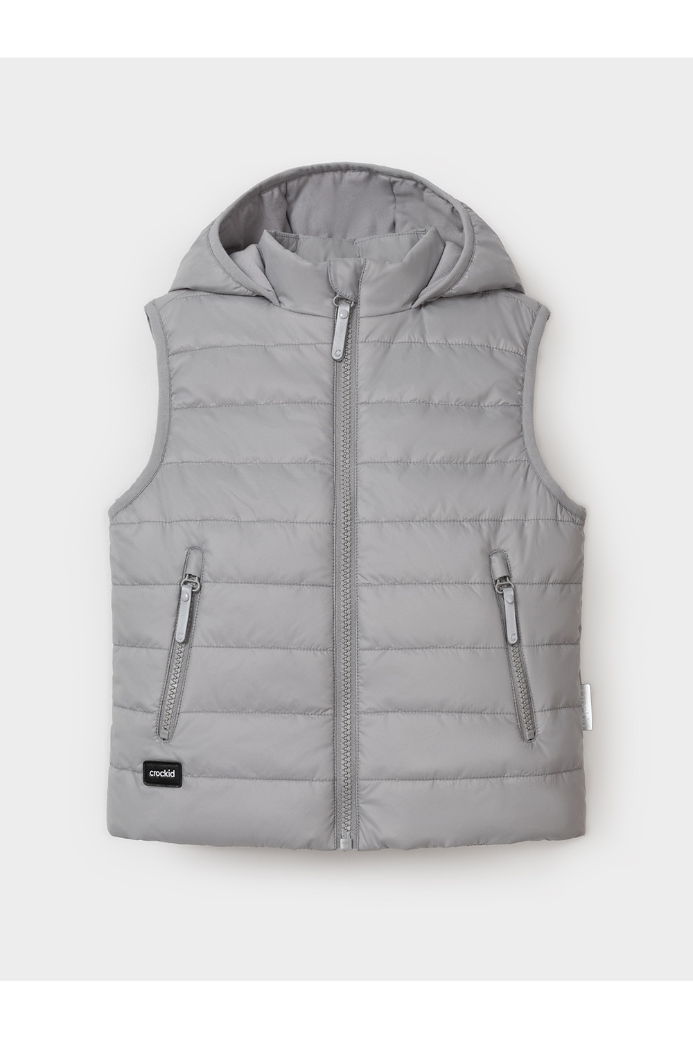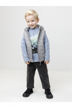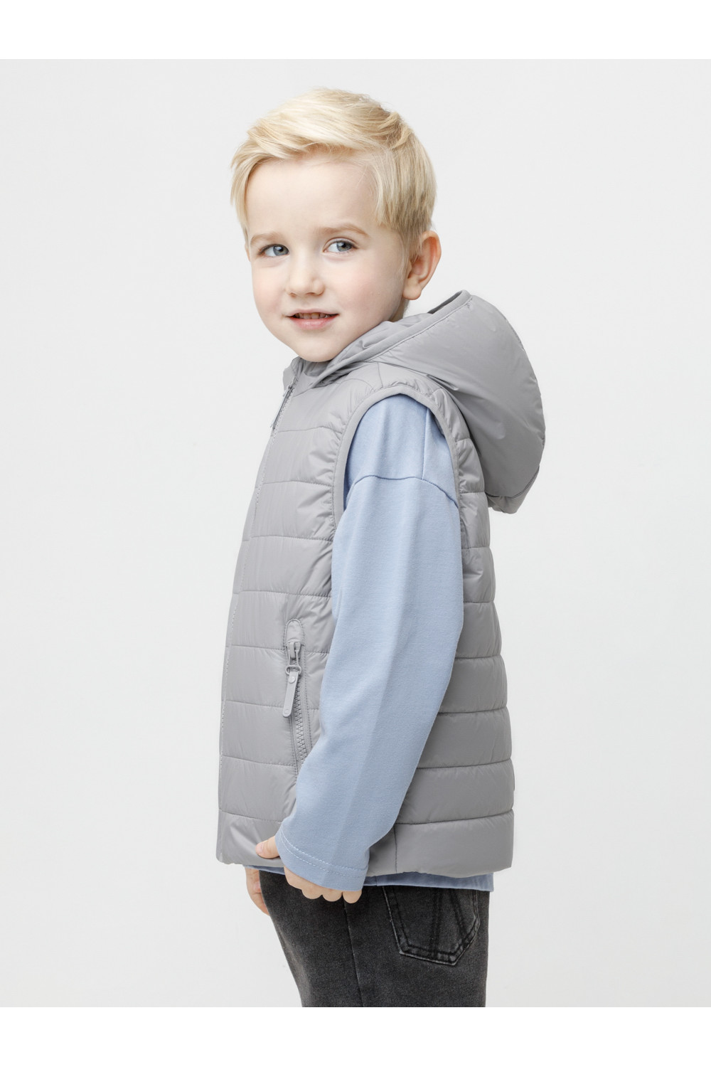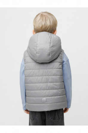Стёганый жилет с капюшоном для мальчика с утеплителем Fellex®, 120 г/м2. Выполнен из мембранной ткани с дополнительной тефлоновой обработкой. Данный вид обработки предохраняет изделие от загрязнения и лучше отводит влагу. Подклад из хлопка в размерах 86-92 и 92-98 и из полиэстера в размерах от 98-104 до 122-128. Капюшон не снимается. По краю капюшона и проймам обработка эластичным кантом для лучшего прилегания. Изделие застёгивается на молнию, предусмотрена защита подбородка. Два кармана по бокам на молниях. Во всех изделиях верхнего ассортимента для безопасности ребёнка предусмотрены светоотражающие элементы.