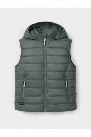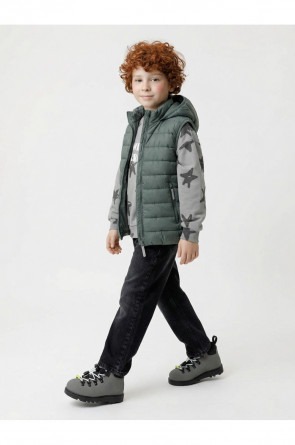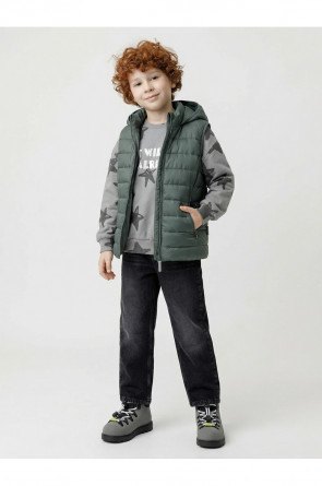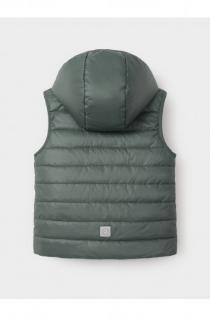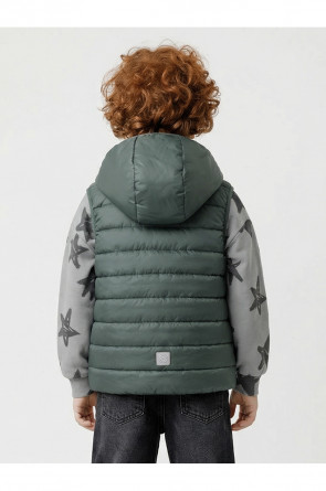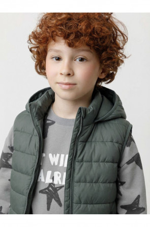 Стёганый жилет с капюшоном для мальчика с утеплителем Fellex®, 120 г/м2. Выполнен из мембранной ткани с дополнительной тефлоновой обработкой. Данный вид обработки предохраняет изделие от загрязнения и лучше отводит влагу. Подклад из хлопка в размерах 86-92 и 92-98 и из полиэстера в размерах от 98-104 до 122-128. Капюшон не снимается. По краю капюшона и проймам обработка эластичным кантом для лучшего прилегания. Изделие застёгивается на молнию, предусмотрена защита подбородка. Два кармана по бокам на молниях. Во всех изделиях верхнего ассортимента для безопасности ребёнка предусмотрены светоотражающие элементы.