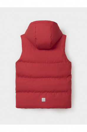 Стёганый жилет с капюшоном для мальчика с утеплителем, 120 г/м2. Выполнен из мембранной ткани с дополнительной тефлоновой обработкой. Данный вид обработки предохраняет изделие от загрязнения и лучше отводит влагу. Подклад из 100% полиэстра. Капюшон не снимается. Изделие застёгивается на молнию, предусмотрена защита подбородка. Два кармана по бокам застёгиваются на молнии. Во всех изделиях верхнего ассортимента для безопасности ребёнка предусмотрены светоотражающие элементы.